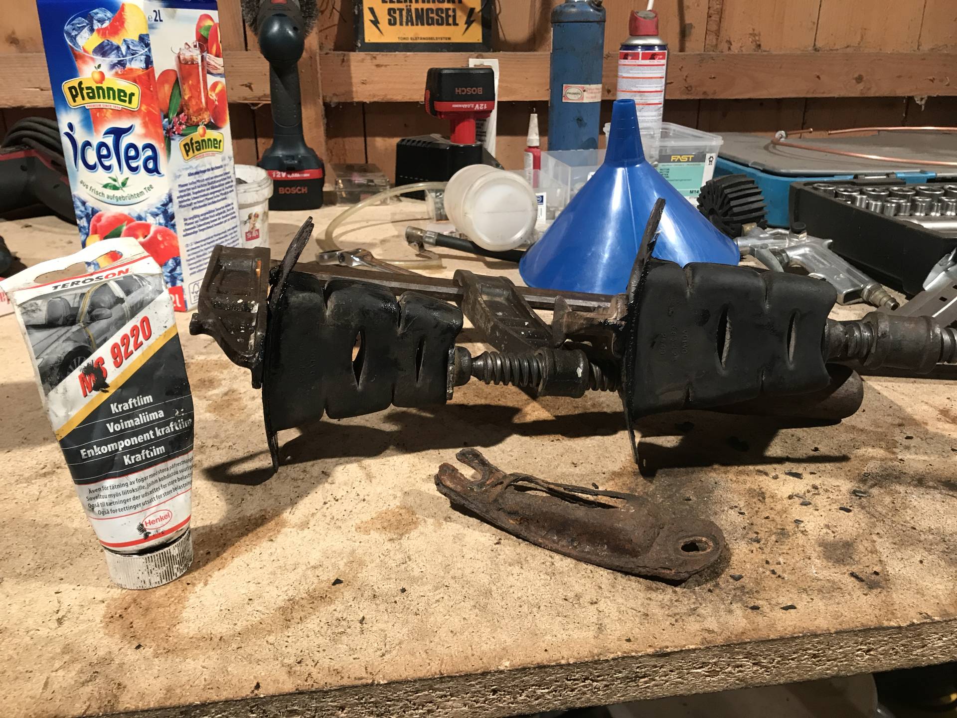 Idag var jag på skroten och hämtade en ny sån plåtbit till genomslagsgummina som ni ser på bilden. Därefter Slipade jag ner all rost och håller på o limma ihop dem. Ska måla resten av den plåtrena metallen sen är dem klara!