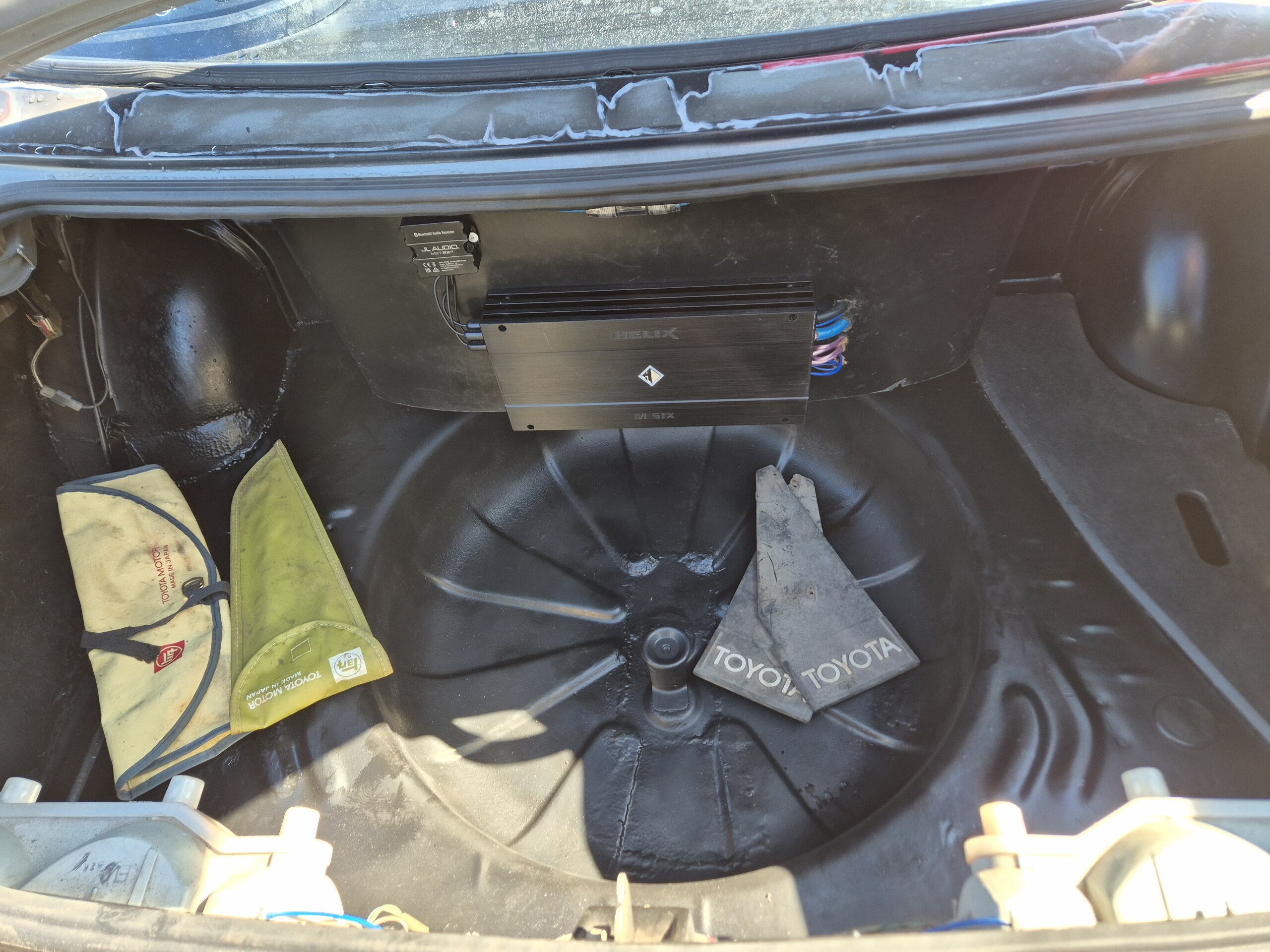 Saknas reservhjul(?), bagagerumsmatta, och någon baslåda