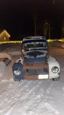 Hel vitt knappstopat lder i tak, drrsidor, instrumentpanel och bakvggen. 50 tals bakelit p sommaren och gammal rally ratt p vinternBilstereo och multimedia