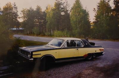 Sedan har den hamnat i Överkalix hos en Mopar fanatiker som d satte i 440 och lackerade den gul svart (som en geting) fr den gick lika hrt som en geting ;)
