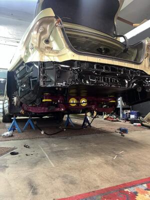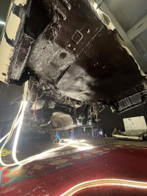 Rostlagad undertill, epoxy primer sedan truckbedsmassa under bilen.