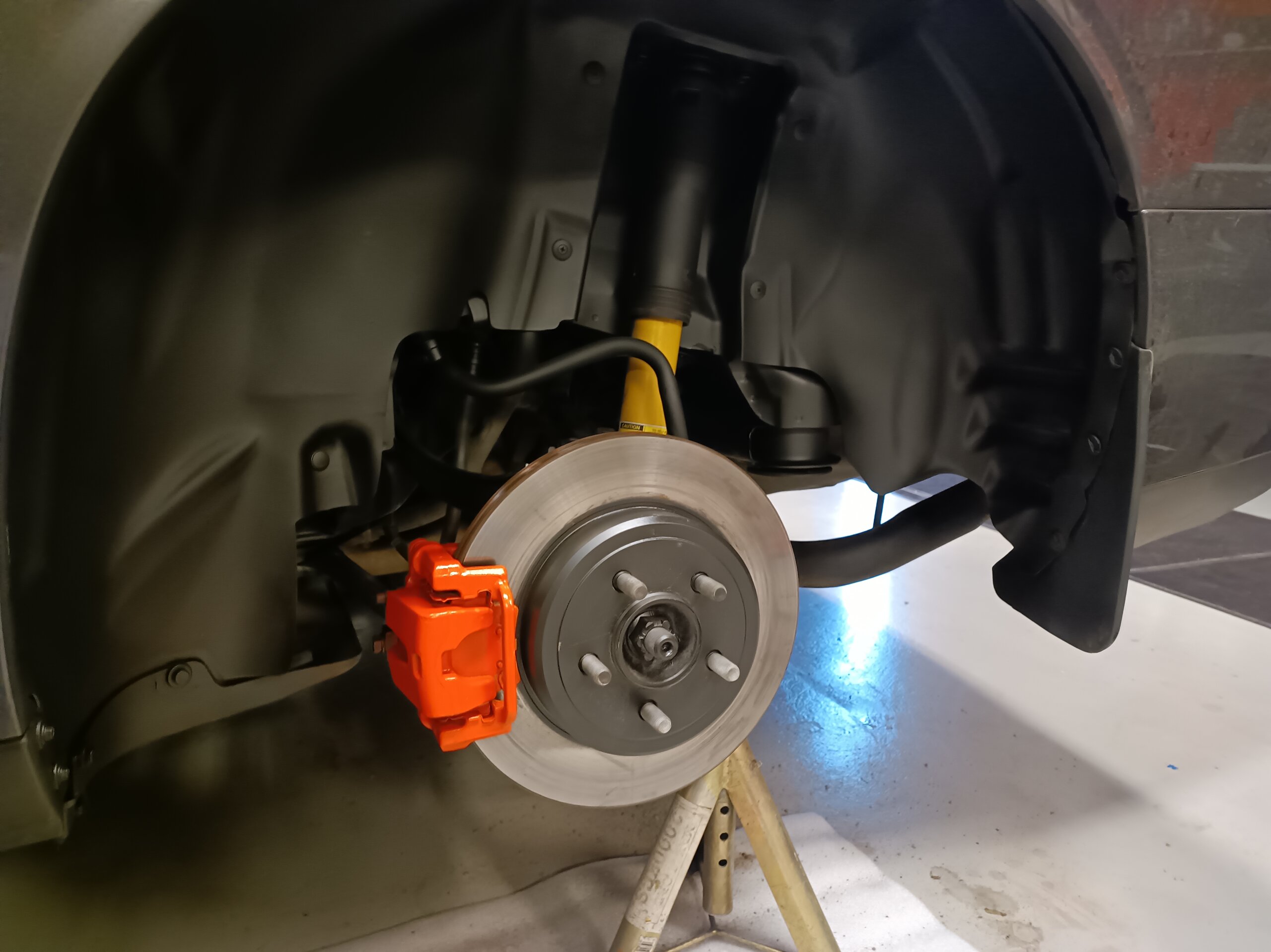 Så det känns bättre med, helt slipade och rengjorda hjulhus, grå/svart body spray i hjulhusen och bromsskivan antracit grå efter grå grundfärg, bromsoken ordentligt rengjorda och slipade grundmålning och avslutas med tre lager orange...