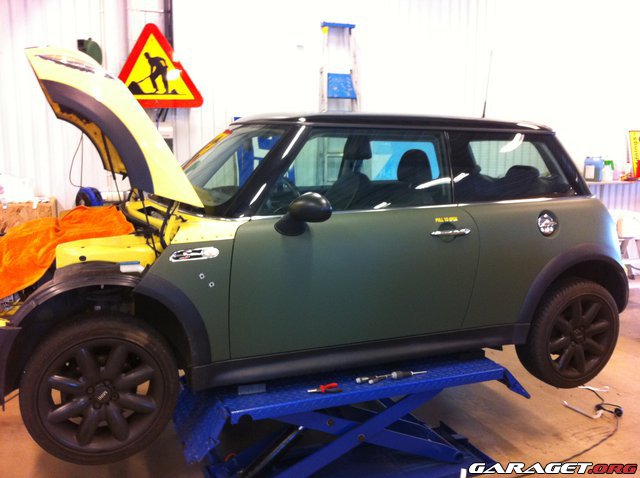 Mattgrns foliering av Minicooper med Spitfire/militrtema!