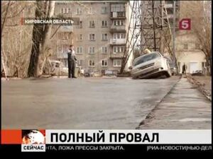 En vattenläcka har fått en bil att trilla ner i hålet och taxichauffören hamnar ...