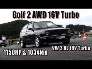 16Vampir Golf MK1 AWD 1000HP first quarter mile test. 1,8L 16V KR Turbo engine ...