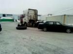 Vi hade en traktorslang liggandes, så det är väl klart vi drog den efter bilen.