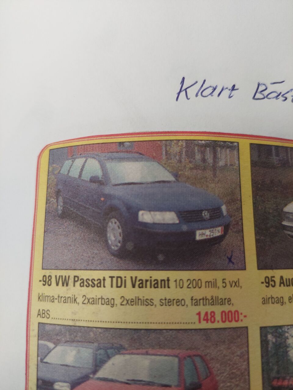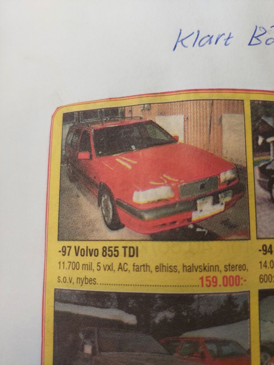 Avgaser i kupé (video). V70 diesel