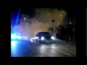 Big supra burnout and the rev limiter makes a car alarm go off