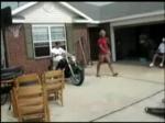 Antingen så glömde dom att ha växel i eller så hoppa den ur när den slog ner, ...