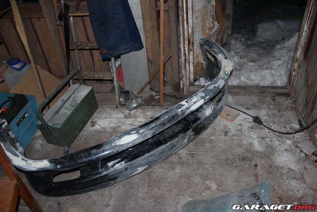 Laga sprucken frontspoiler samt gra om luftintag i huv