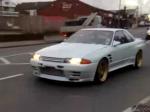 Rykande start av en Skyline R33 GT-R med RWD läget aktivt