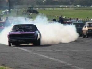 Crazy driver on drag strip.