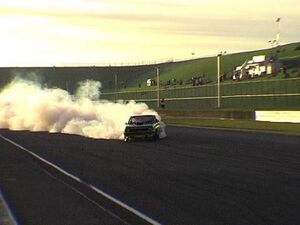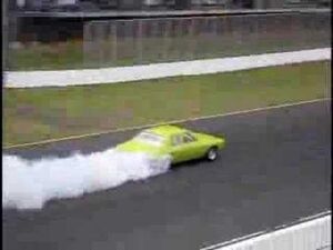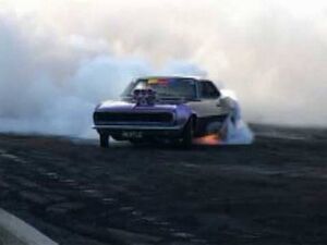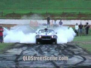 Burnout tävling i Australien, Den 5:e bilen med turbomatad 500Cui Big Block tog ...