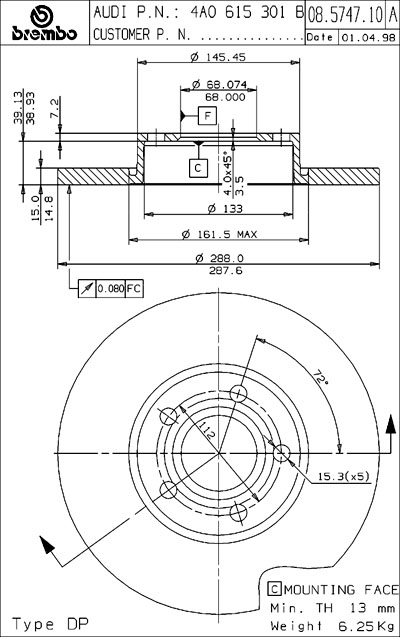 Hittade detta på www.bildetaljer.se men såg att det fanns både solida och ventilerade fram på Audi A4 1.8 95-00.