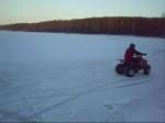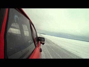 bilen startad och ska köras på sjön..