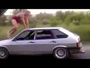 Bilsurfar i bara kalsongerna
