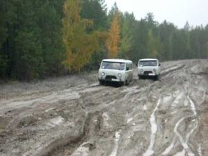 The road at the BAM railway line. Campus Syberia Mongolia Expeditions 2009