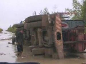 försök till att bärga en lastbil någonstas i ryssland
