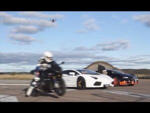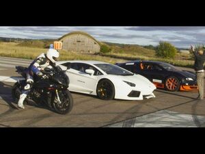 Bikecam Drag RACE Bugatti Veyron Vitesse vs Lambo Aventador vs BMW S1000RR