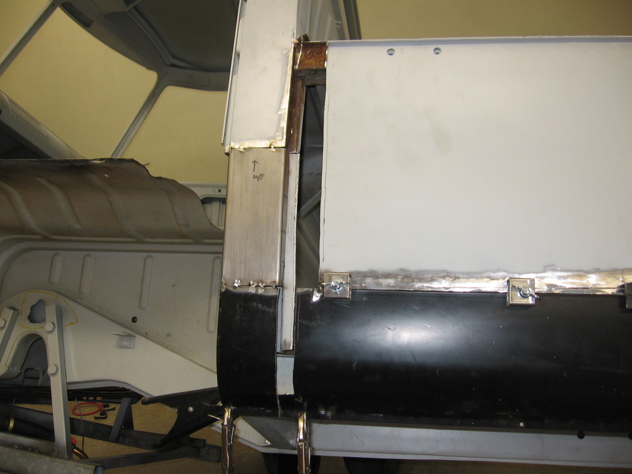 Kapade ur för den nya biten som ska gå längs hela sidan ner och bokas över kanten så man får det klassiska utsticket som finns på pickuperna.
