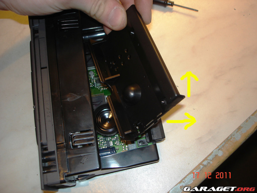 Lyft locket uppåt och drag bakåt.