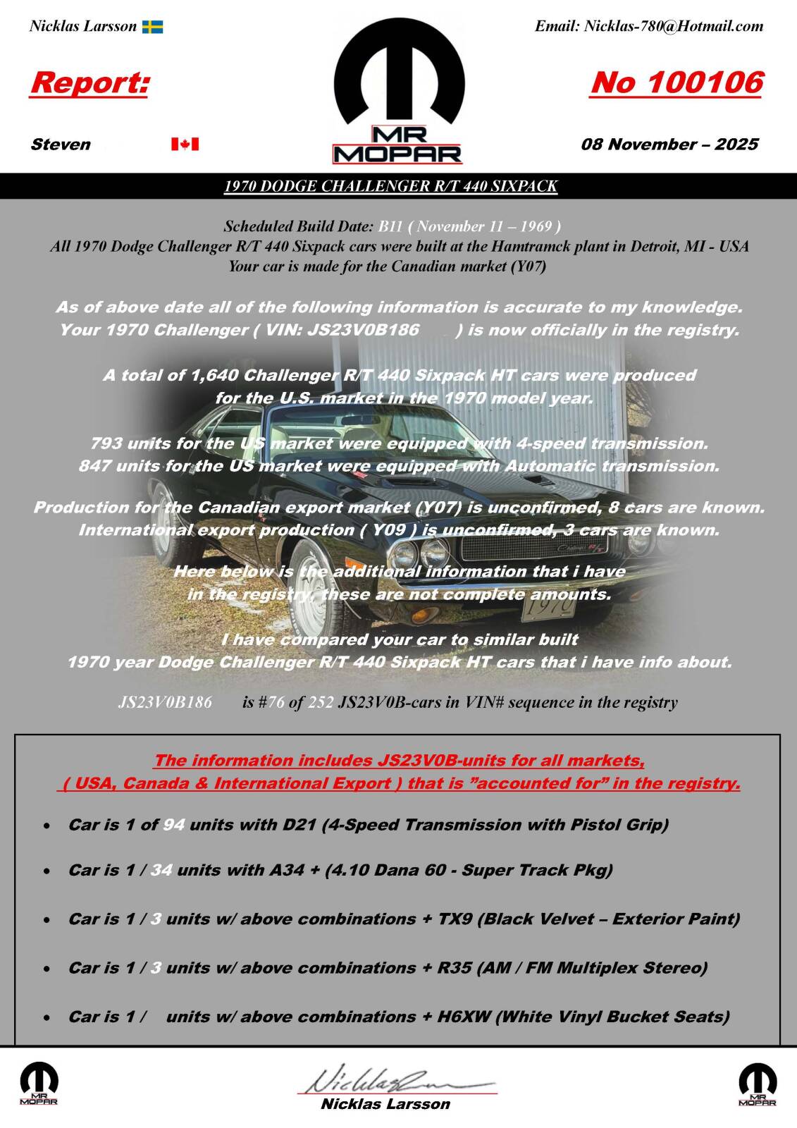 Mr Mopar Report & VIN Registry