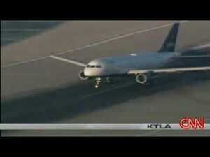 Noshjulet fastnade i 90 graders vinkel vilket piloten får indikeringar om i cockpit och kan därför hålla nosen uppe så lång tid som möjligt...fälgen är gjord av magnesium därför det är sån ljus färg på lågan!