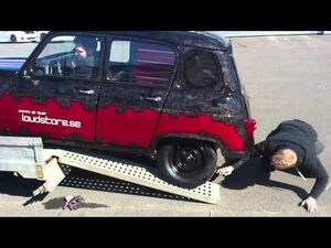 Tung bil!! men varför inte bara rulla fram kärran när bakhjulen kommit ner? GAAS