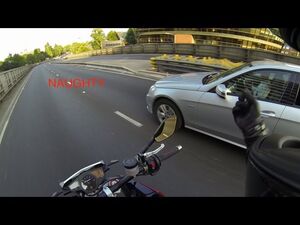 Bättre att ge fan i sin leksakstelefon eller vad det nu är man fokuserar på istället för bilkörning - och har koll på trafiken istället! Hade han inte varit vaken på hojen så hade han kört in i bilen pga att han plötsligt bromsade, troligen pga att han fick sms eller likn. Vad är viktigast?? "Väcka" folk som sitter ofokuserade bakom ratten eller låta dom titta åt annat håll och kanske köra ihjäl någon i samma veva...