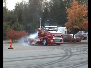 Big truck doing donuts in a drag race event in Xanthi, Greece