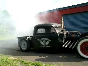 burnout burnout burnout 1950 rat rod ford truck "42 chops garage"