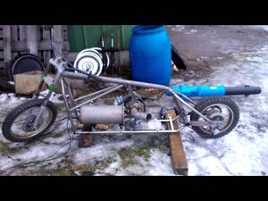 Turboshaft minibike testing day at short road with temporary propane bottle, ...
