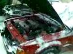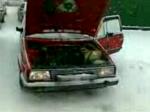 Sladdar med vinterbilen i rondell
